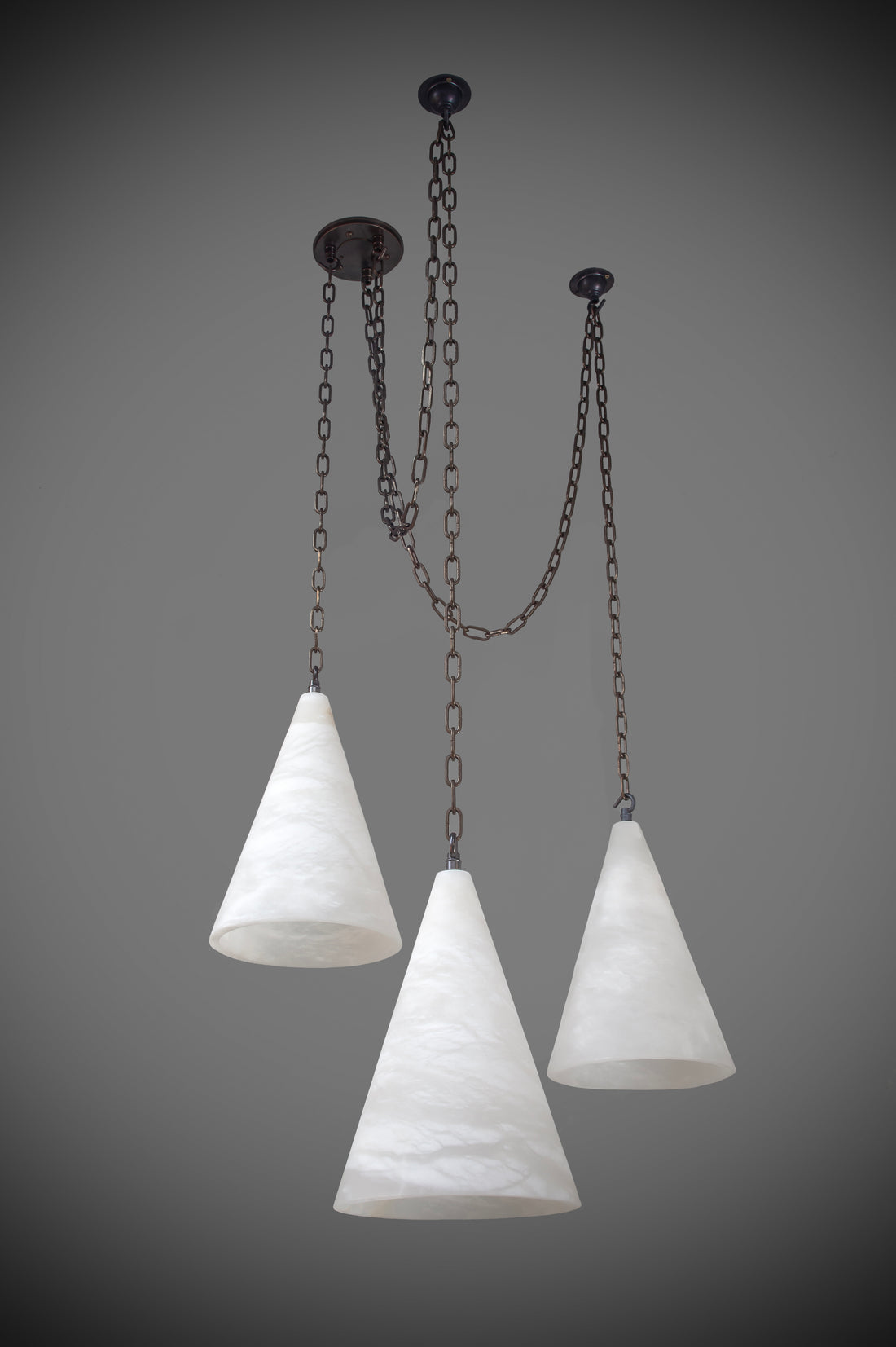 Triple Cluster Alabaster Cone Pendant Lights 30cm /12 inches