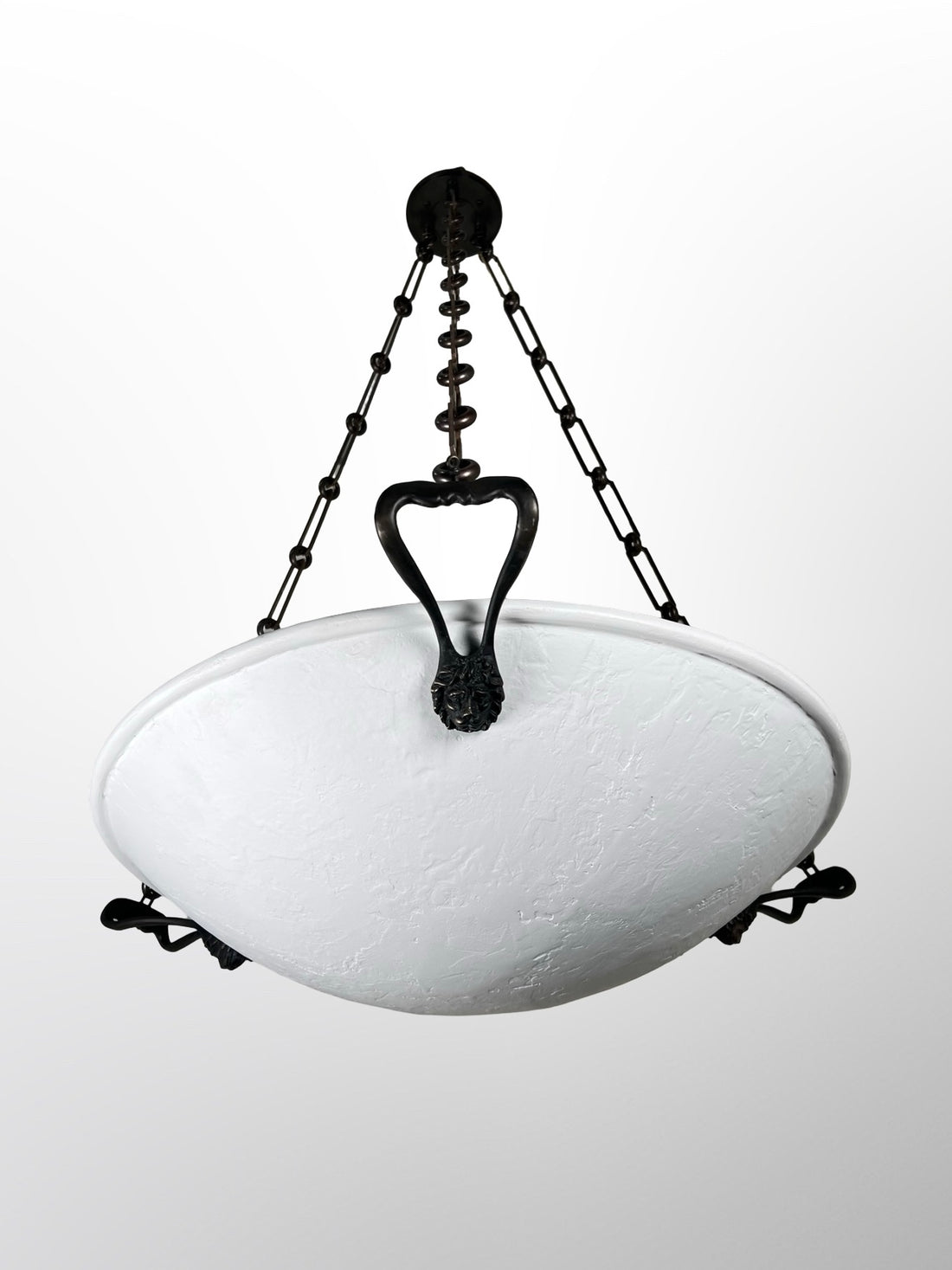 Plaster Bowl Chandelier in the 19th century style – 80cm Diameter with Rectangular Bronze Chain