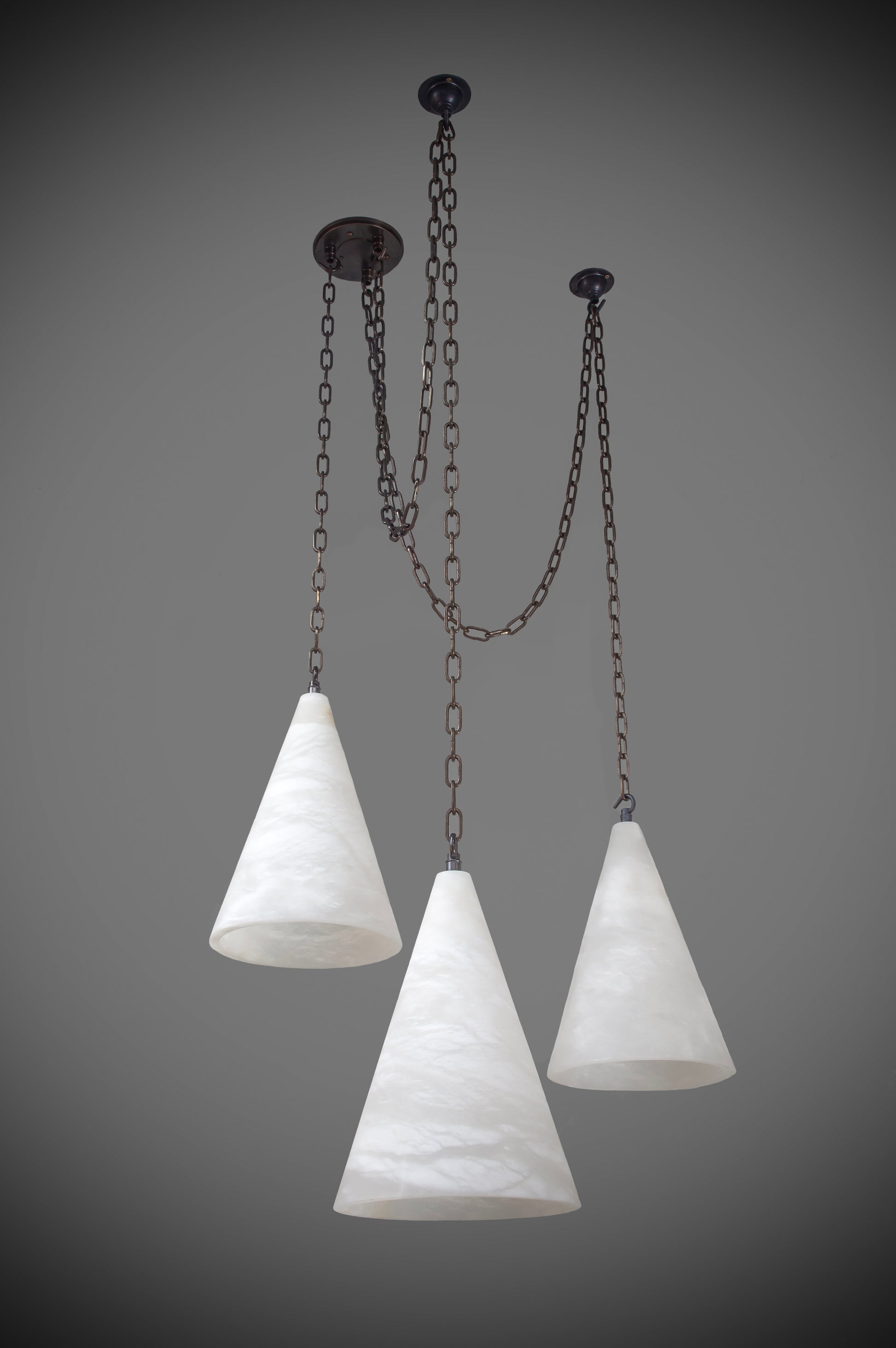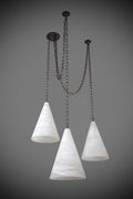 A contemporary trio of Alabaster cone pendants, designed to bring sculptural elegance and a soft, natural glow to any interior.