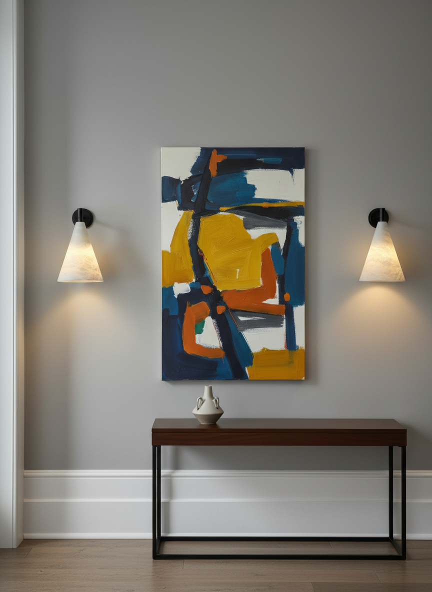 Elevate your interiors with the refined elegance of our Bronze and Alabaster Cone Wall Light. Designed for discerning spaces, this piece blends timeless materials with sculptural simplicity — ideal for both contemporary and classic schemes.