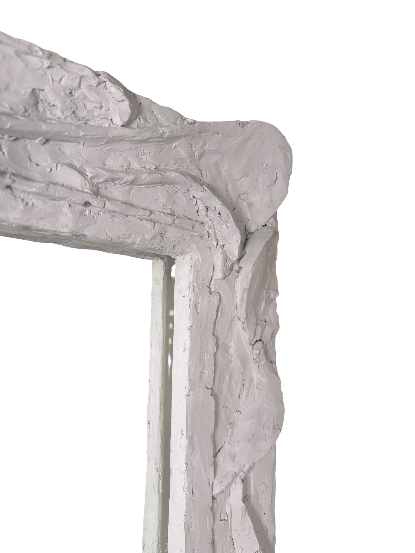Each mirror is cast in plaster and finished by hand to emulate the textured, tactile quality characteristic of early Giacometti work. The surface features subtle variations and tool marks, giving the frame a sculptural depth that distinguishes it from standard decorative mirrors. While the design pays homage to the original, every piece is individually made, resulting in unique character and craftsmanship.