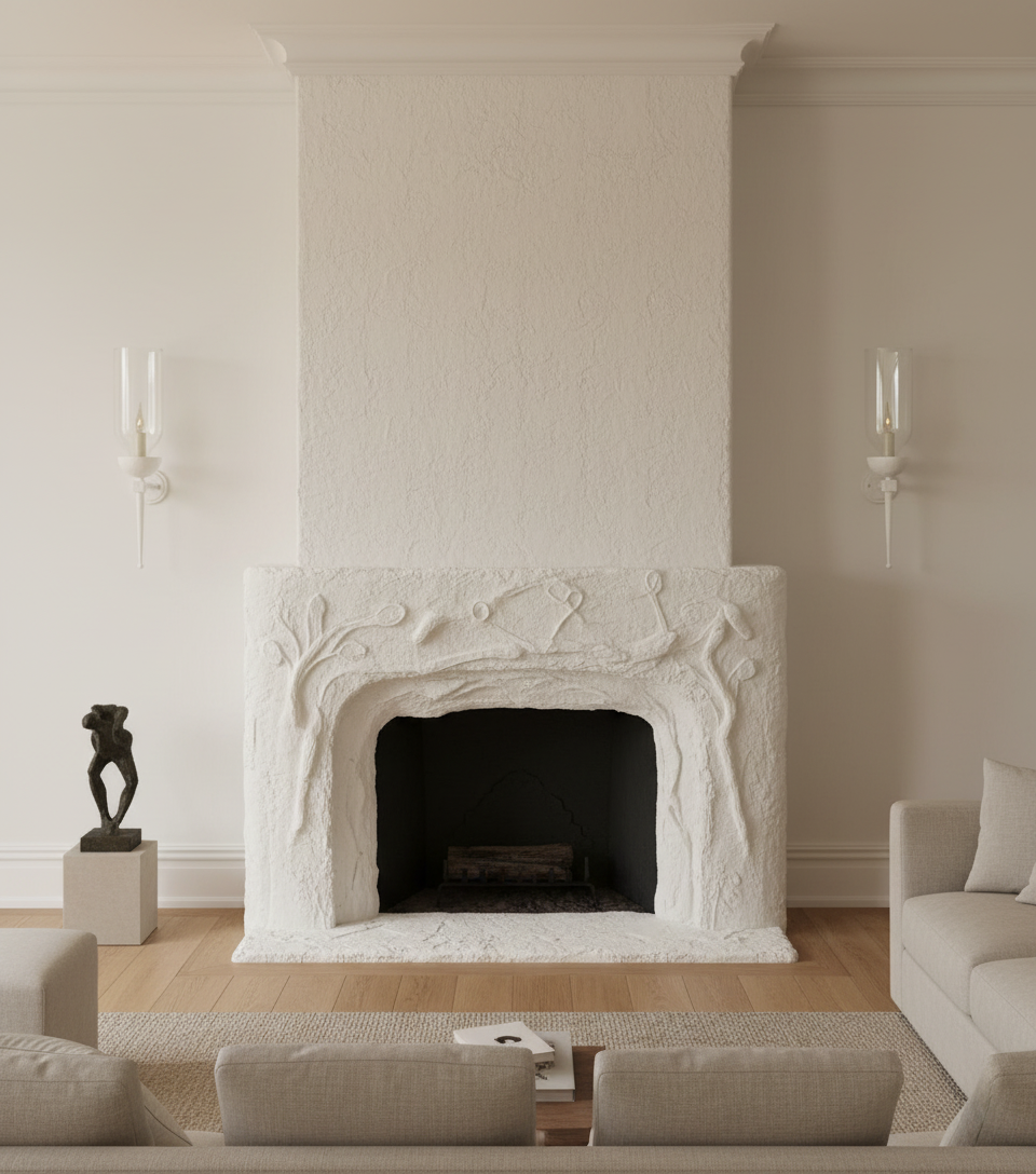 - Smooth white plaster finish — hand-applied and naturally tactile